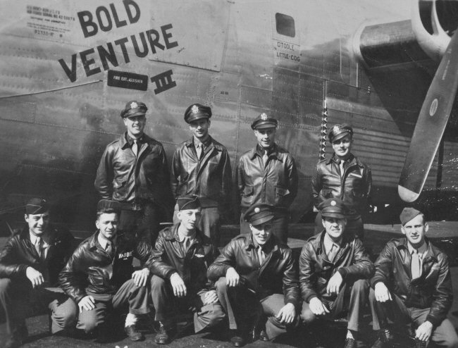 Frank G. Beatty Crew#18 Left to right standing: Frank G. Beatty, Jerome N. Schorr, Samuel E. Scott, Donald W. Fraser Bottom: Daniel Davis, Richard O. Fabiano, Henry R. Batke, Kenneth G. Wasser, Richard S. Chamberlain, Samuel S. Rozier Former 492nd BG crew who were among the 24 crews transfered into the 467th BG to form the second organisation of the 788th on August 10th 1944. |