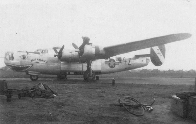 B24H 41-28962 "Flak Magnet II" 791st B.S. Photo taken when the ship was with the 791st before transfer to the 790th. It was lost with the 790th following a surprise German strafing attack when the aircraft landed at Brussels, Belgium, returning from a mission on the 31st December 44. See Photo. Also Nose Art. |
